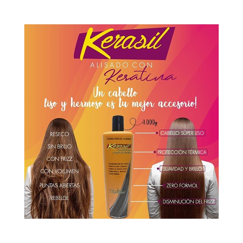 El KERASIL CREMA PARA EL ALISADO está desarrollada para reducir el frizz, el volumen del cabello y proporcionar un liso perfecto. Éste producto se activa con el calor, es por esto que su fórmula ofrece protección contra el calor extremo, reduciendo radicalmente los efectos dañinos de los secadores y las planchas. Contiene Keratina y Sericina cuyos efectos son ampliamente reconocidos como agentes de reparación, fortalecimiento y protección de la fibra capilar, disminuyendo sustancialmente el daño del cabello. Por su contenido de aceite de Argán brinda un efecto hidratante, aportando acondicionamiento, suavidad y brillo. Está recomendada para todos los tipos de cabellos.